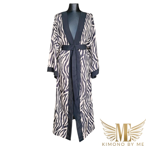 NAMIBIA MAXI Klasyczne długie kimono ze skrzydłami, czekoladowa zebra